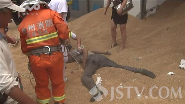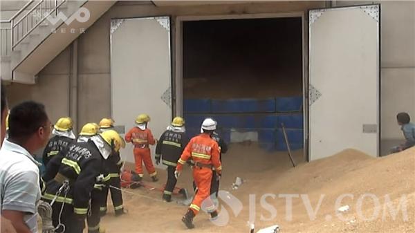 6月27日中午11时22分左右,邳州市炮车镇中储粮站仓库小麦堆发生坍塌,一老汉被埋麦堆中。邳州消防接到报警后,很快赶到现场,并展开救援。