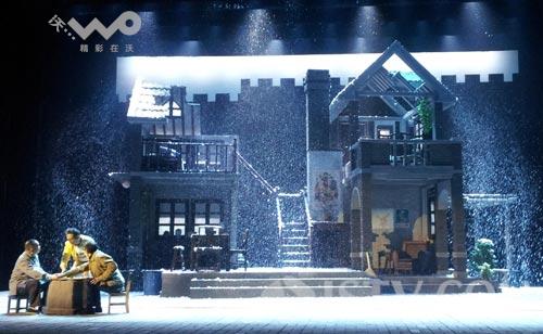 舞美设计也是这部话剧的一大亮点,设计师刘海峰把一幢古朴精致的民国建筑搬上了舞台,下面铺设了直径十多米的转盘,保证整幢房子能360度旋转,满足剧情需要的同时还能全景式地展示着民国建筑,这项南京人“独一份”的文化遗产。