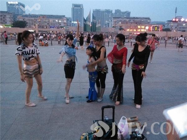 ”,伴随小苹果旋律女孩们跳起了肚皮舞吸引了现场上百名观众围观。