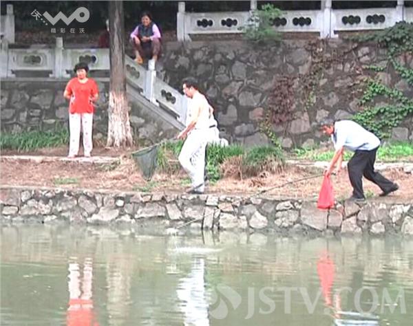 在镇江珍珠桥下的运河边,记者看到,这里俨然成为了一个捕鱼竞技场。鱼叉、弹弓、渔网,市民们装备虽然各不相同,可是捕起鱼来一个个都是好手。