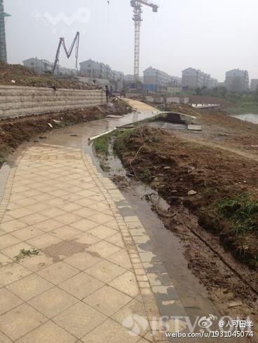 记者发现,珑湖旁边是一家名为珑湖国际的新楼盘。这外楼盘的施工负责人表示,这里原本没有排污管道,由于在施工过程中他们的工人挖断了地下的主排污管道,大量污水满溢,为了不影响附近的景观,他们才设置了临时的排污管道,把污水直接引到了旁边的珑湖里。