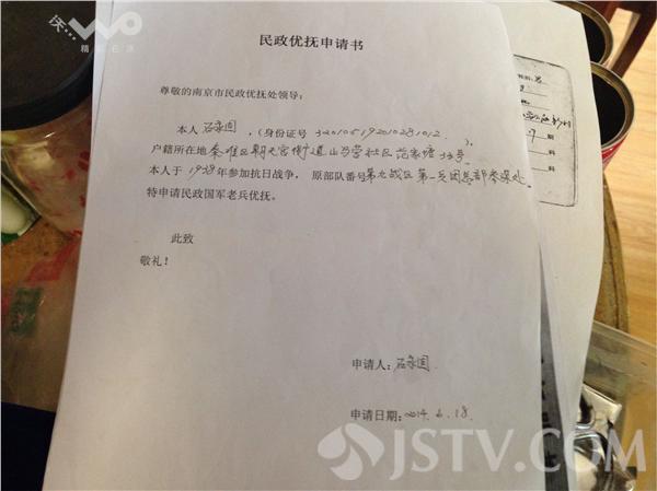 南京的几位抗战老兵表示,其实除了政策上的待遇,他们最希望的就是对于他们曾经参与抗战的肯定。96岁的抗战老兵石永固 “我已经这么大年纪了,现在的条件就不错了,有这么多志愿者照顾我我满足了。但是要恢复我们的荣誉。”
