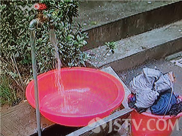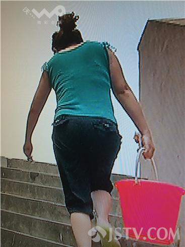 由于家中停水,从早晨七点起,住在五楼的陈女士就从一楼的这个临时水管,一趟又一趟的往家里拎水,一大家子人,大夏天里每天的用水量最起码是二十多桶。
