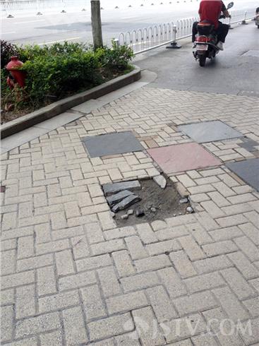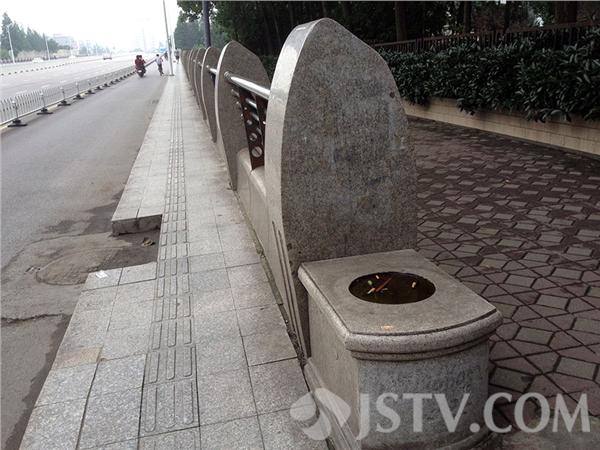 昨晚,笔者经过南京鼓楼区草场门大桥看到,桥头上用来装饰大桥的几百斤大石球,不知被什么人恶意破坏,推倒滚出几百米远,笔者折返走了2分钟在人行道绿化带下找到,笔者掂了掂这球,发现这白色大理石球有几百白重,笔者问了一下附近的市民,听说这球一年前就滚在这儿了,虽然这球在这很明显的人行道路边,但是管理部门却视而不见。有市民说,草场门大街这条路不长问题不少,这位市民说:“你们看,人行道上的这些坑洞都是瞎折腾造成的,以前这条人行道很好,铺的地砖也很平整,大约十年前不知是什么人想出要在这地上装地灯亮化,把好好的地,挖出坑装了地灯,上面有五块方形加厚玻璃盖着,刚开始还行,可是时间不长,玻璃被车子压坏,成了坑,还有人骑车在玻璃上滑倒,他们又只好把坑填了把玻璃换成大理石,因为大理石面积大,厚度只有2公分,只要汽车开上人行道,一下就压碎了,现在又成坑洞”这位市民说,这些坑洞让人烦,车骑到这里会跳起来,有时还有人摔倒,这位市民希望有人来修一修。