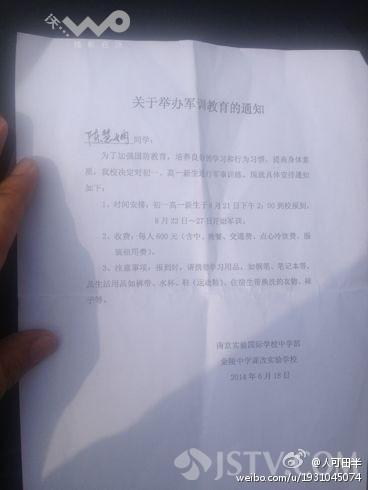 王女士表示,自己女儿今年参加中考考了543分,6月28日得知这个成绩之后,她就与南京实验国际学校中学部联系,对方表示,王女士女儿的成绩肯定能录取。