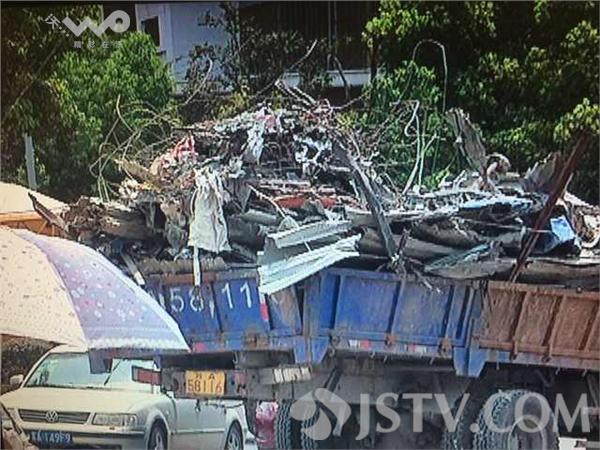 记者来到在工地门口,一辆挖掘机正在把农用车上的建筑垃圾压平,农用车缓缓驶出工地大门。没过五分钟,又一辆满载垃圾的农用车驶离工地。
