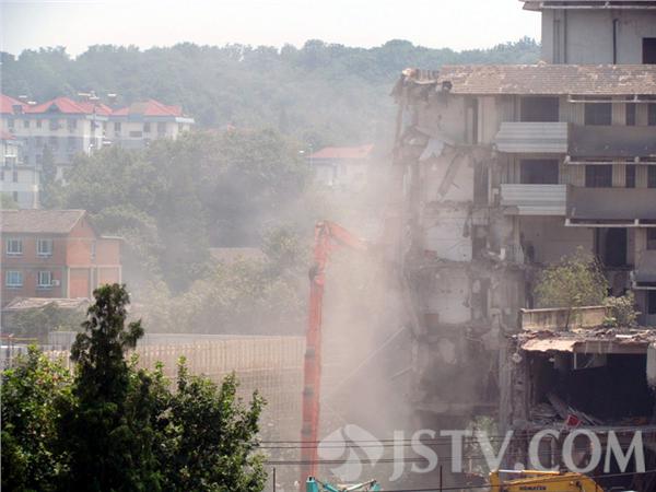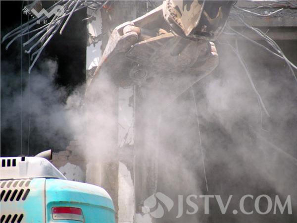 为保障青奥会期间南京的环境质量,南京市政府下令自7月15日起,除地铁和青奥配套项目以外,全市范围内所有工地都要停工。然而,30日中午,在南京长干桥附近,仍有处拆迁工地在市中裸露拆迁,机器轰鸣,房子不断倾倒,灰尘一阵阵腾空而起被浮尘笼罩,发出的噪音和随之而来的扬尘让人心烦。