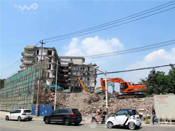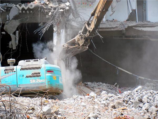当日中午12点多,笔者南京中华门城堡上参观时,听到秦淮河长干桥南侧一处拆迁工地,挖掘机的轰鸣,随后灰尘腾空。走到该工地,却发现房屋已有三分一被推倒、前后7-8台挖掘机正在整理废钢筋,装车。还有几台挖掘机正在拆迁墙体,只有一辆洒水车喷着小水压降尘,南侧路边没有围挡,挖掘机正在尚未拆除完毕的建筑废墟上开挖,巨大的轰鸣声震耳欲聋,扬尘四处飘散。裸拆在蓝天白云显成强烈反差。