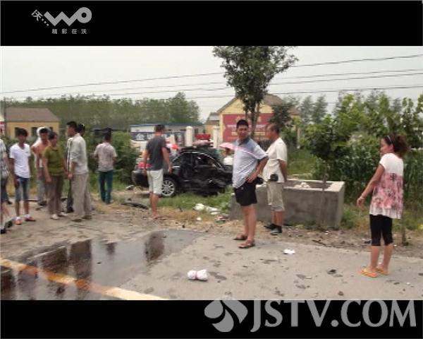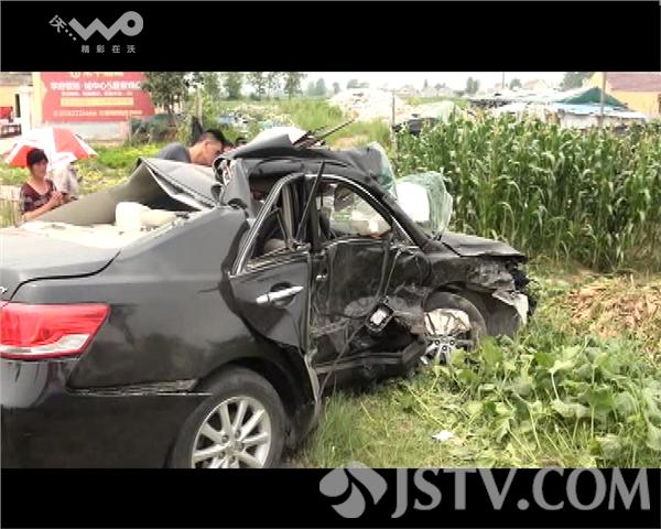 在现场记者看到丰田轿车已经冲到了马路对面的草丛里,轿车车体严重变形,车内司机和乘客都有不同程度受伤。为了防止司机失血过多,一位路过市民顶 着烈日,用手紧紧捂着司机伤口。