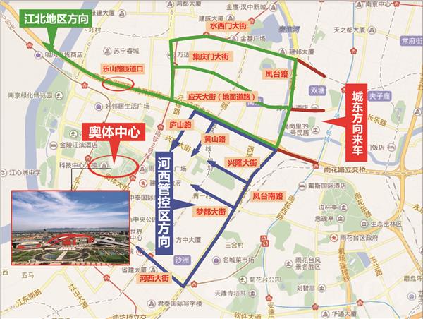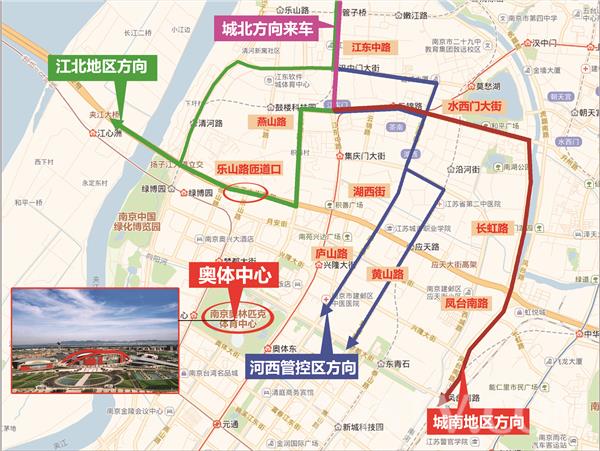 28日闭幕式当天,为保障闭幕式顺利进行,保证城市道路交通安全畅通,届时,南京交管部门将对奥体中心周边及相关道路分时分段采取临时交通管控措施。
