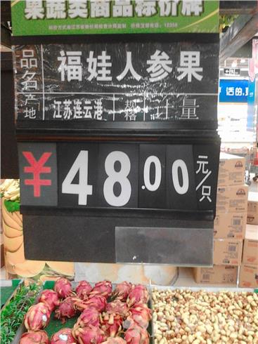 后来有另一围观的顾客称,他在电视上见过这种水果,这种福娃人参果当初是用磨具套在外面使其长成的,不是天生如此,人形水果卖相好,价格高,比天然的人参果价格要高上双倍。对照旁边货架上的食用油,48元一个的福娃人参果刚好相当于一桶5L色拉油的价钱。据旁边售货员介绍,这种水果刚来不久,就是赶在节(中秋节)前售卖的,越接近过节,越是卖得好,根本不愁卖不掉。