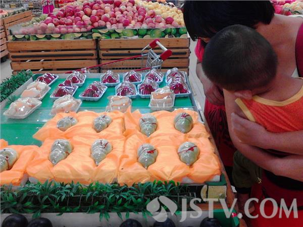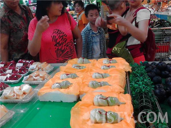 昨天笔者在市区一超市购物,发现一水果货架边围满了顾客,走近后发现大家都在围观一种叫做“福娃人参果”的水果,该水果有鼻子有眼,外表酷似人形,有一层塑料薄膜包装,很多顾客十分好奇,表示从未见过该种水果,怎么还长成人的模样呢?旁边有小孩刚拿起一个仔细观看,站立一边的售货员连忙前来阻止,称只能看,不能摸。好歹48元才买一个么,精贵的很!
