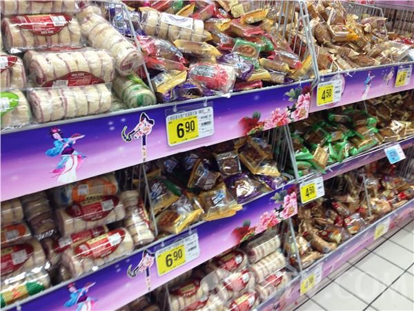 随着中秋脚步的临近,许多超市已经提前将月饼放在显眼的促销位置。