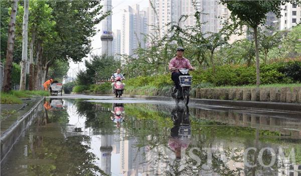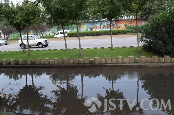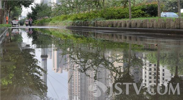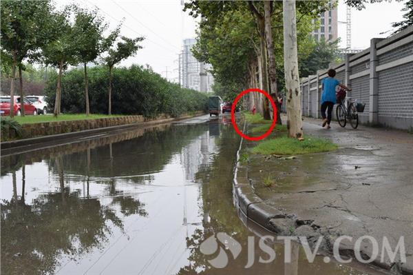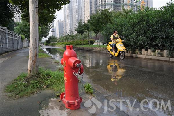 笔者现场发现,慢车道上积水确实十分厉害,骑车经过的市民要么淌水而过,要么干脆上得人行道。而旁边快车道上,则路面干燥通畅,一岛之隔,路面对比十分明显。据在附近打扫路面的环卫阿姨称,这里开启消防栓用水已经很久了,大是用来浇灌花木,也有少部分洒水车会前来用水,一般集中在早晚时段较多。笔者注意到,用完水后,消防栓的盖子竟还没盖上,一直都垂挂在那里。