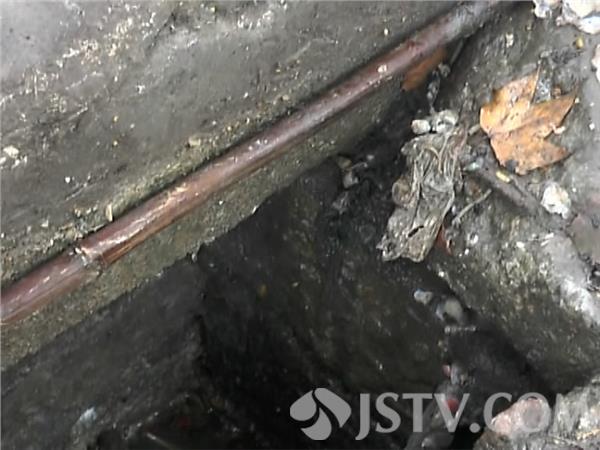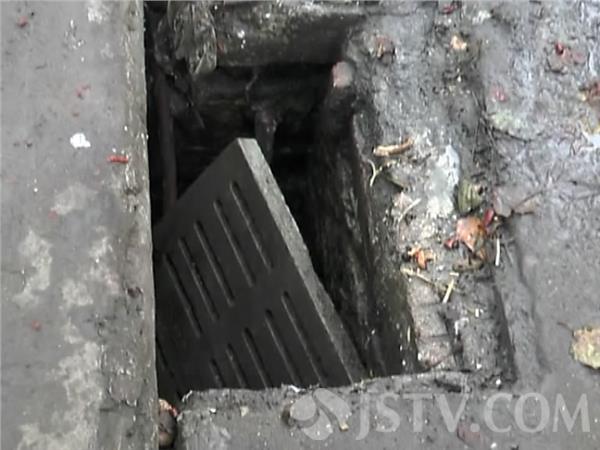 记者发现,这处窨井只有三个边可以支撑窨井盖,在窨井盖的里面只用了一根手指粗一些的竹杆支撑,窨井盖的周围全都是油污,脚一但踩上去,窨井盖这会像跷跷板一样,结果就成了陷井。