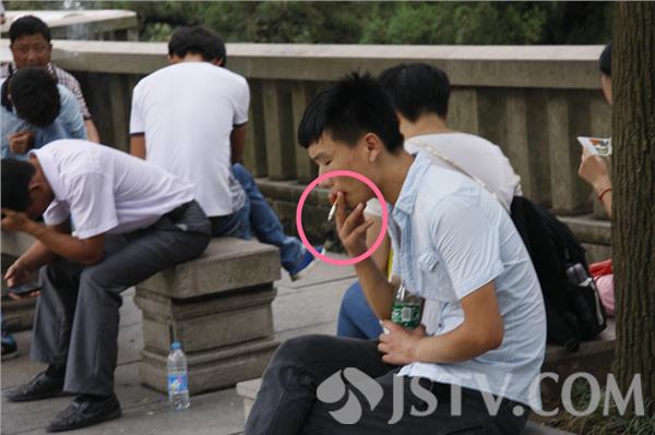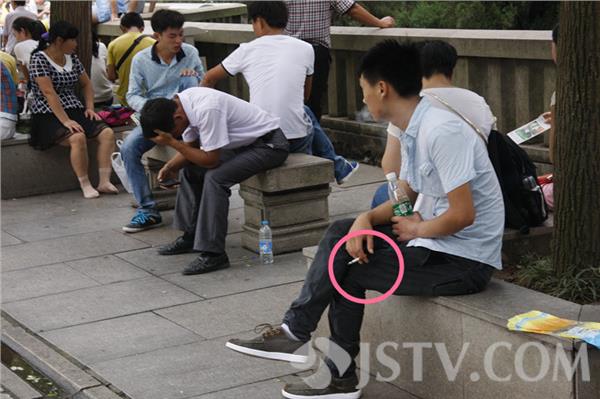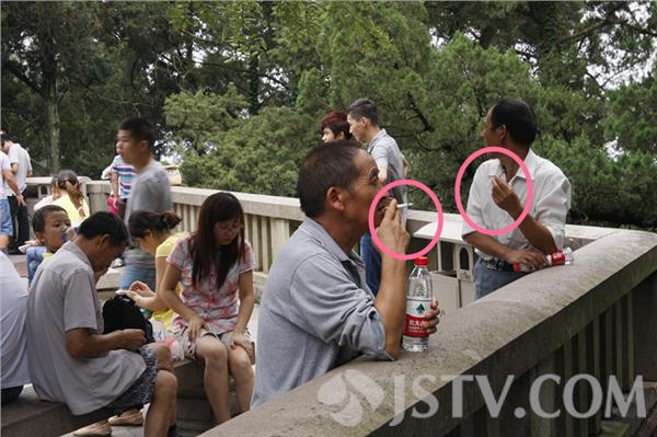 中山陵景区全国著名的AAAAA景区,也是一级消防管控单位,景区内实施全面禁烟。为此,陵园管理方在道路两旁和显著位置放置了都放置了“请勿吸烟”告示牌。然而,昨天下午笔者却在中山陵墓道和祭堂周围看到有众多游客点着香烟在吞云吐雾,有的吸完烟后将没有掐来的烟头往地下一丢,有的甚至丢入草坪或树丛中。虽然,周围有打扫卫生的保洁员,以及保安路过,但他们对于这种缺乏文明、危及景区安全的行为却是熟视无睹。