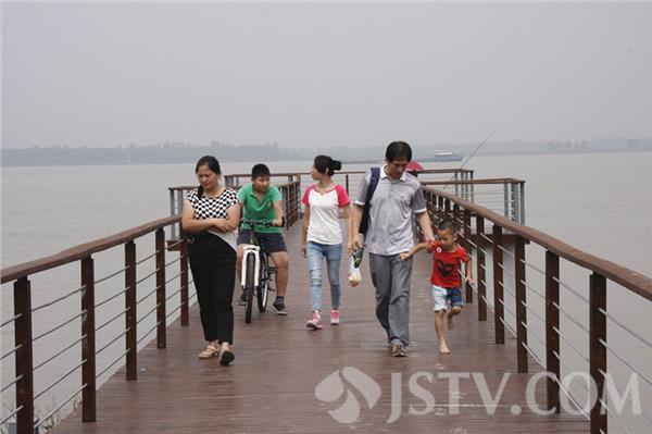 万里长江水,南京滨江美。金秋时节,从长江大桥南堡公园至河西鱼嘴公园,以及连接江心洲、浦口区沿江亲水步道在内的全长58公里的南京滨江风光带全线贯通对市民开放了,这是南京人值得骄傲的一张新“名片”。它高潮叠起、风光迷人、美不胜收,作为建国65周年的献礼工程当之无愧!