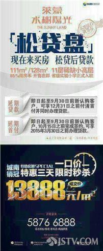 上周日,南京全面松绑限购政策,而一只靴子落地的同时,另一只靴子——“限贷”仍然是购房者出手买房的一大阻碍。为促进销售,南京城南一家楼盘趁势打出了“松贷盘”的旗号,号称买房人可以等到限贷放开后再办理贷款。这做法靠谱吗?