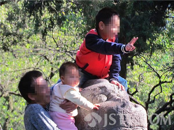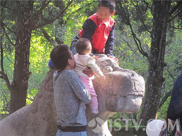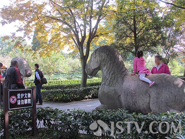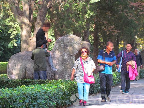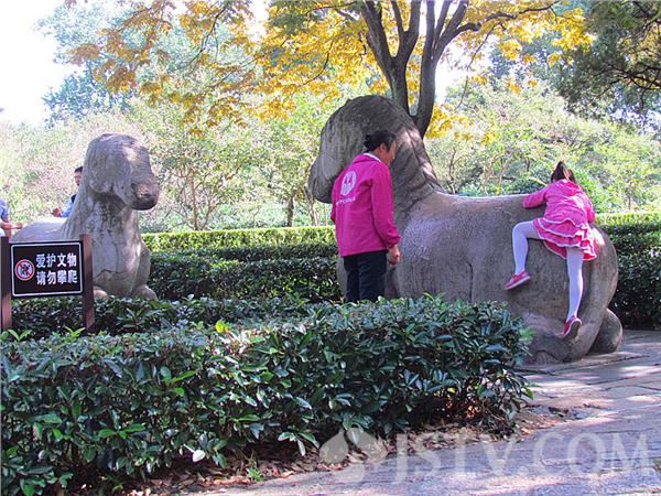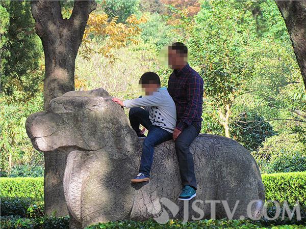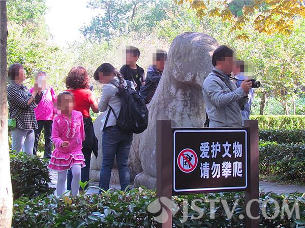 今天是国庆黄金第一天,每到一处景点,就能见到长枪短炮的“爱摄一族”。旅游时拍张相片留念,原本无可厚非。但在到南京明孝陵景区,部分游客或攀爬文物,或无视爱护文物 请勿攀爬视而不见,实在有失文明、大煞风景。