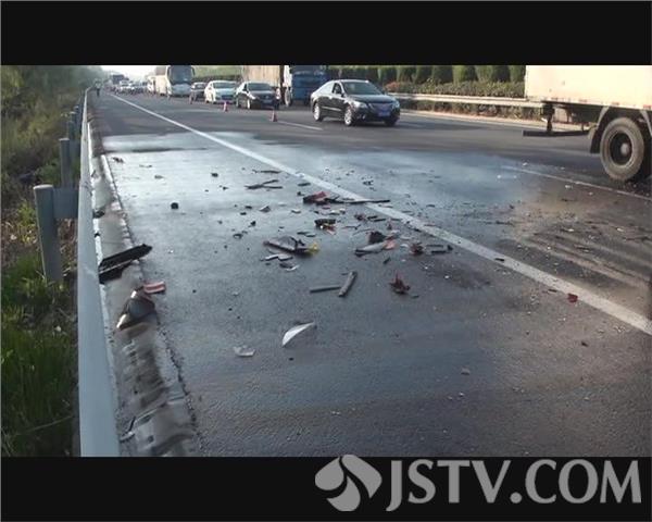 记者赶到现场时,受伤驾乘人员已全部被120救护车接送到医院,大部分的事故车辆已被清离事故现场,积压的车辆正在缓慢通行,在950号桩附近,一辆厢式货车头朝北靠边停在由南向北的应急车道里,车头左右两侧保险杠弯曲变形,前挡风破碎,北侧100米左右的地方,一辆大货车停在路边,右侧的邮箱凹陷,连接处还有一块玻璃,厢式货车的南侧地面上散落不少破碎的零部件和塑料挡板。一名在高架桥上围观的村民告诉记者,在高架桥这边的一个现场,就有四、五辆车子发生了碰撞,来了两辆救护车。