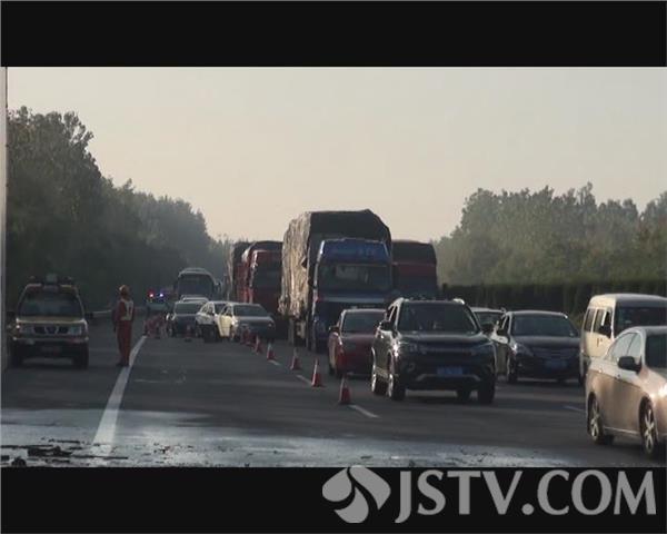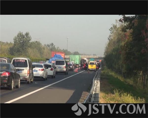 10月1日早上6点钟左右,记者接到市民电话爆料称:在沈海高速射阳段950号桩至952号桩之间