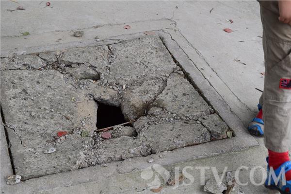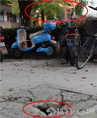 破成洞的井盖距离大门口不过20米左右,初步判断为遭汽车频繁碾压所致。破洞的井盖上水泥已经开裂,裸露出了里面很细的钢筋。据附近游客称,这个井盖的质量似乎也太次了,汽车再来回碾压几回估计能彻底压垮。由于正值游客集中的大门口,安全隐患不容小觑。呼吁有关部门能引起重视并及时修复,消除安全隐患。