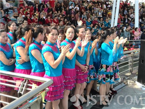 今天一大早,一支支穿红着绿的广场舞队亮相盐城市盐渎公园水上舞台,第四届中国青儿广场舞大联盟表演活动拉开大幕。来自全国20多个省(市)的30多支广场舞队轮番上场各展绝活,网络歌手祁隆、雨禾、刘冰等也在现场为观众演唱了多首歌曲。记者注意到,广场舞者大多数是中老年妇女,也有男子和孩子,一个个跳得充满激情,活力四射。
