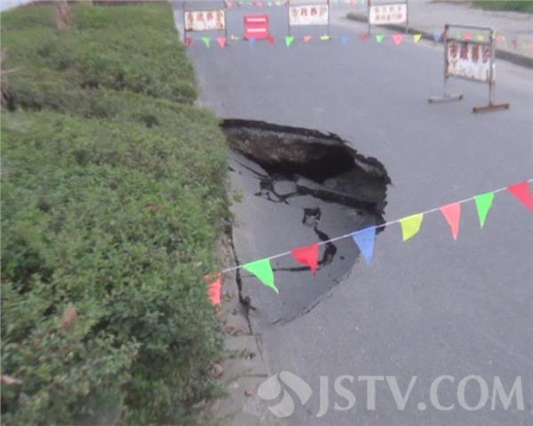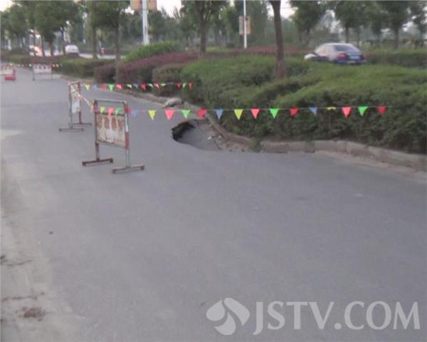 今天下午2点多钟在扬州施沙路施桥段一加油站附近,非机动路面发生塌陷,面积大约6平方左右,所幸当时没有行人车辆经过,没有造成人员受伤,