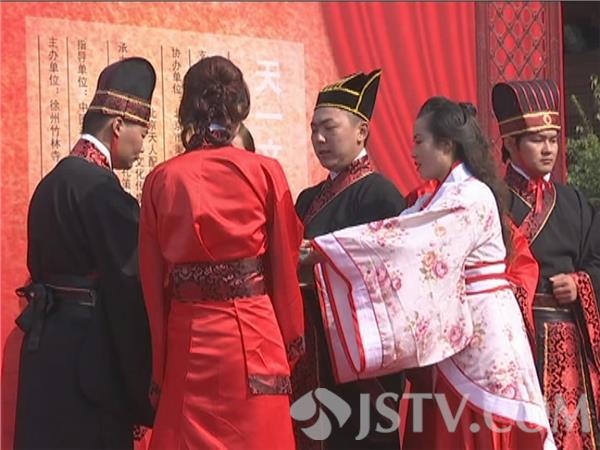 10月7日中午,来自全国各地的30对热爱汉文化的新人们,在徐州楚王陵景区,举行了一场别开生面的汉式集体婚礼。现场是非常的热闹,接下来,我们一起来看汉式婚礼现场。下午,这30对新人还在徐州竹林寺举行了佛化仪式。