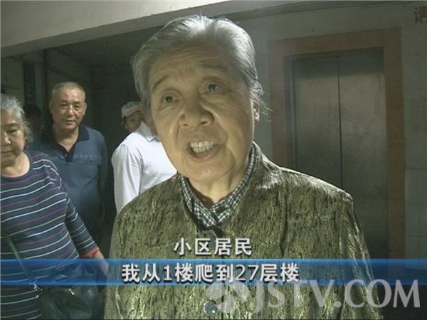 小区居民:我八十三岁了,我从1楼爬到27层楼,要四十分钟左右。我心脏不好血压又高,所以我现在不敢爬了,医生说你不能爬。