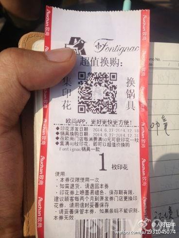 最近,南京欧尚超市搞了一个活动,顾客在店内消费50元就可以获得一个印花券,集满80张印花券就能低价购买两个锅具,并获赠一种高档刀具。市民王先生从9月24日开始,陆续花费4000多元购物,终于集满了80张印花券,可当他去领赠品时却被告知,活动提前结束了。