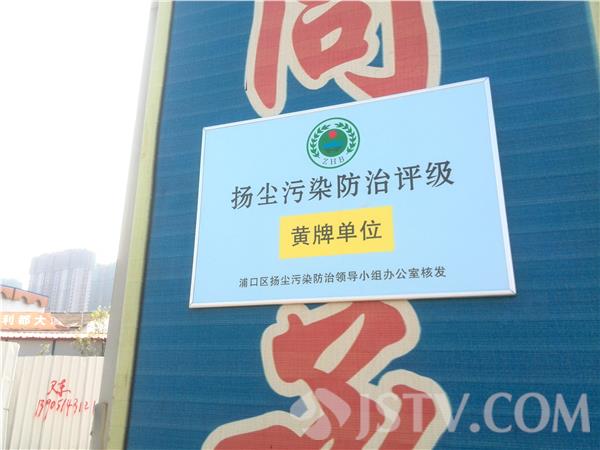 扬尘办的工作人员介绍说,我们给各家工地的扬尘评级化为五个级别,绿, 蓝,黄, 红, 黑。 对扬尘落实情况进行考核。前段时间我们来检查过,而且会不定期来检查,这家挂黄牌,说明存在的问题还是比较严重,我们在挂牌的同时还要向相关监督部门住建局等单位进行汇报。