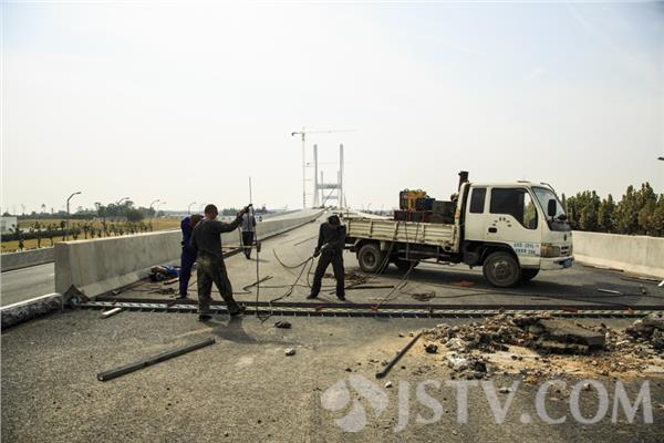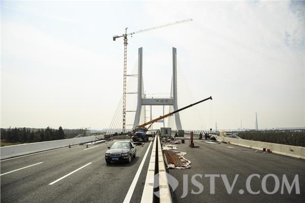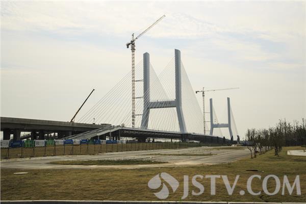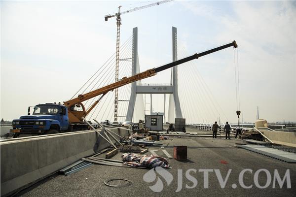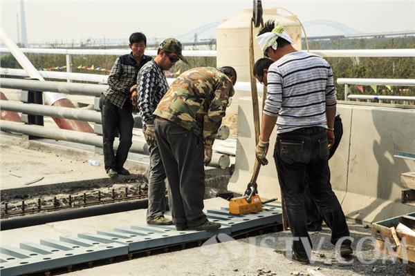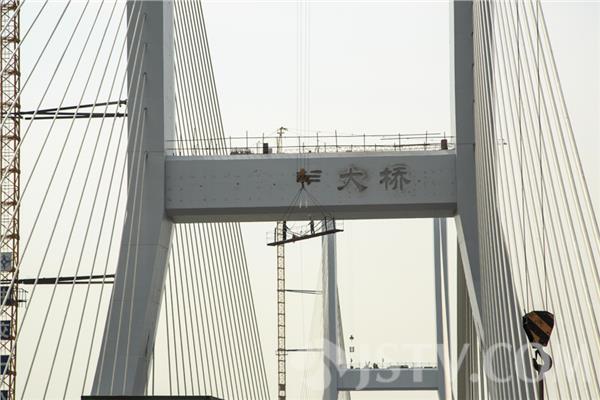 笔者在新秦淮河入江处看到,大胜关大桥已基本完工,只有中间部分脚手架未拆,工人们正在忙碌扫尾工作,安装桥面上的伸缩缝,以及在桥墩横梁上镌刻桥名“大胜关大桥”。