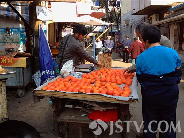 “霜降摘柿子,立冬打软枣”,“霜降”时节的柿子个大皮薄汁甜,达到全盛状态!是吃柿子时候,然而笔者在南京鼓楼小市菜场看到,又大又红的柿子摊贩仅卖1元1斤,让大跌眼镜。
