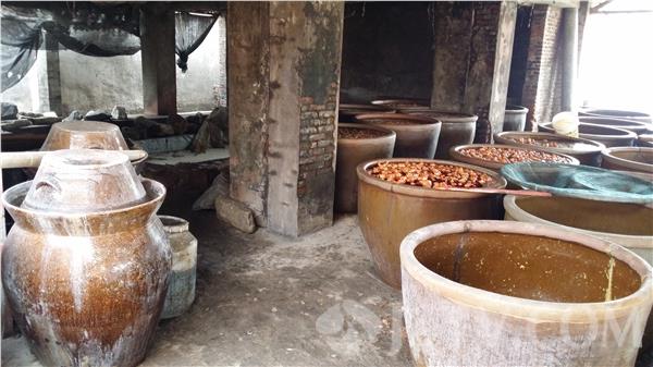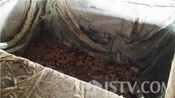 被举报的企业位于淮安市淮安区宋集乡,名称为淮安市淮海调味品厂,是一家生产酱腌菜的食品加工企业,主要产品有糖醋蒜、乳黄瓜等等。近日,记者走进这家企业时发现,它的生产环境果然如举报人所讲,肮脏不堪:所有的原料都在半开放式的车间里腌制,水泥池和大缸上结满了蜘蛛网。对于环境差的问题,企业负责人倒是不回避。这家敞开式生产的企业又是如何来防止蚊虫的呢?