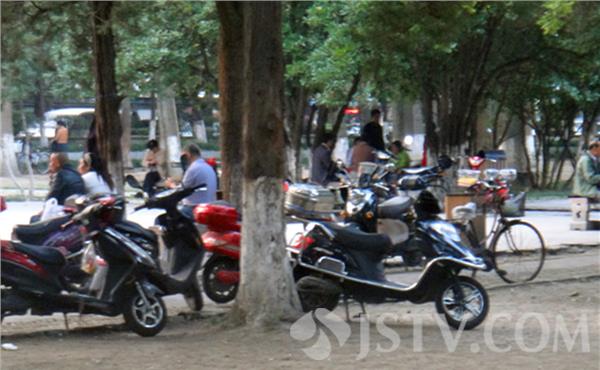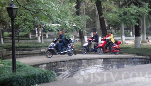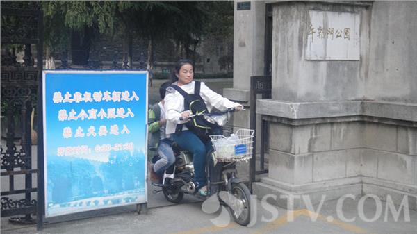 昨天傍晚,笔者陪同外地亲友前往位于秦淮区御道街北端的午朝门遗址公园参观浏览,公园大门前明明悬挂着“禁止非机动车进入,禁止小商小贩进入.....”的大牌子,但是许多骑车的市民熟视无睹,径直把电动车、摩托车、自行车骑入公园。笔者在公园转了一圈,公园内的各种非机动车还真不少。据在这打扫卫生的保洁员介绍,今天的车还不算多,周末时才多呢。这些车辆都是来这跳舞、健身、打牌,以及K歌的市民骑进来的。前些年公园还有人管理,现在免费了,根本就无人管。虽然牌子挂在大门口,那禁车令对这里的常客来说根本就不管用。有时三三两两,有时一来就是一大班人,十多辆车鱼贯而入,车子碰到市民、游客,发生摩擦是常事。