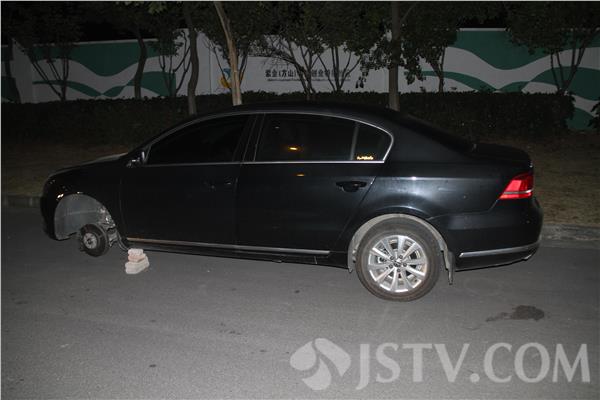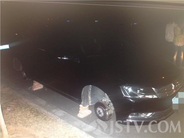 前两天,李先生从苏北来南京江宁找朋友谈事情。晚上11点多,他从朋友家出来,发现停在路边的轿车,整个被几块砖头垫了起来,车上的三个轮胎不见了踪影。李先生赶紧报了警。由于李先生是外地人,很少来南京,警方排除了遭人报复的可能性。分析,可能是有人偷了轮胎自己用,便调看了周边监控,排查出车型和轮胎相符的6辆汽车,随后一一对车辆进行梳理排查。