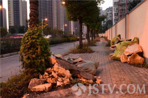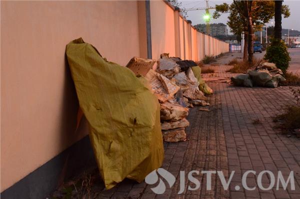 昨天晚间,笔者经过南京城北燕尧路时,发现路边慢车道一侧,竟沿街有“堆放”有多处垃圾,垃圾以废弃泡沫为主,更有草席、木板等,顺着垃圾排列方向,最后发现甚至路边围墙内,也被人丢弃了大量同样的垃圾。显然,如此众多垃圾是被人故意抛摔所致。