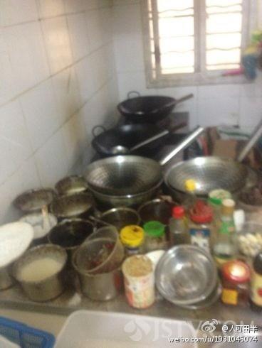 “乐膳七号”的名字听起来的确比烧烤铺“高大上”了不少,可这里制作的盒饭是否也能“高大上”呢?走进餐馆的后厨,各楼食材随意摆放,灶上油污横流,到处都积着厚厚的油渍,洗、切、煮、炒以及打包等所有流程都在这里完成,这样的环境很难符合卫生标准。然而对此,店主却不以为然。