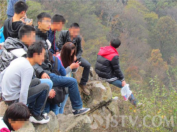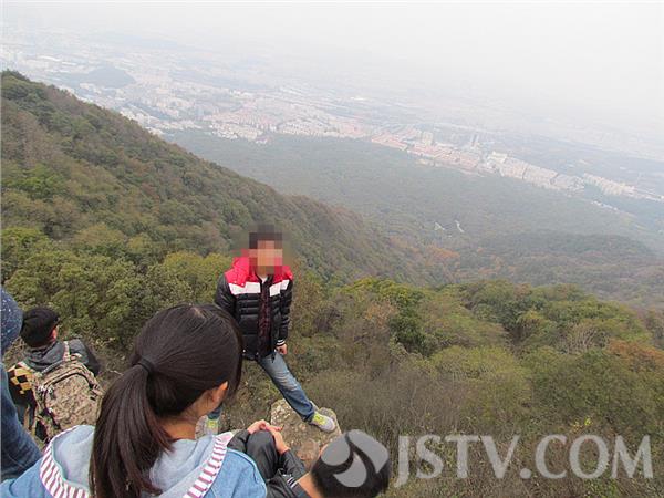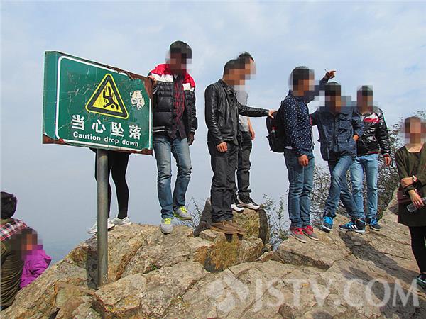 每逢双休日,紫金山上爬山的游客络绎不绝,远眺南京的美景。然而,在紫金山448米顶峰,发现不安全的一幕,一些游客坐在顶峰石头上兴赏风景,有的冒险站在山顶边沿摆POSE,“当心坠落”告示牌形同虚设,游客看心中发慌,担心真的掉下了怎么办。