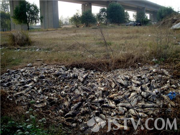 早晨7点左右,在浦口长江三桥江岸上,多远就闻到一股腐烂臭鱼味。待走近江岸边,臭味愈发浓重。只见江岸上丢着一堆堆死鱼,死鱼中有鲢鱼、青鲲鱼,每条大约5斤重,死鱼已经开始腐烂变质。一位附近村民称,这些死鱼是养殖户渔民将家塘中大量死鱼捞上岸,用车运来随意乱倒长江中或江岸上,当有太阳晒腐烂鱼发出阵阵恶臭就越浓,苍蝇乱飞,人们经过这里只好掩鼻而过。