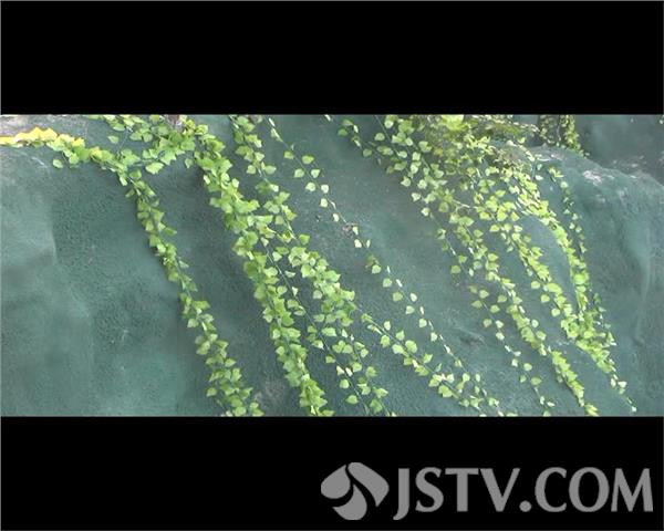 这处美景大约有100米长,20米高,待走进观察发现,山体绿色是用水泥砂喷满的,而青叶藤也全是塑料植物。有市民说,假的绿化只是视觉上的一个感受,毕竟没有起到一个真正的绿化作用,觉得没必要这样。