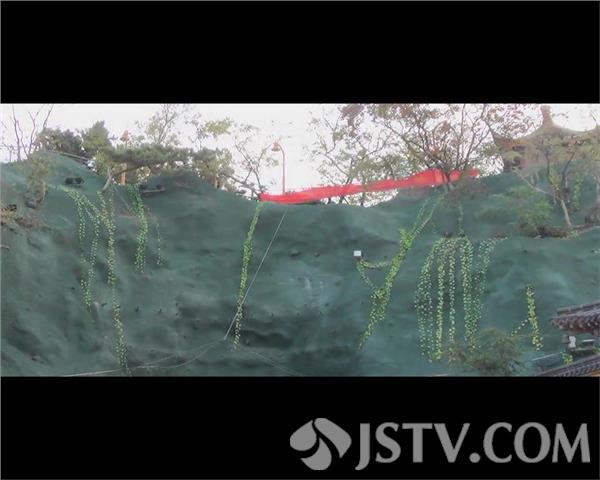 据了解,由于九华山北面山体易滑坡,近日,施工队维修养护山体时,既要山体牢固,又要保持美观,有关部门不得已想出了这个妙招。一些游客感叹,为何真花不用偏要用假花?假的真不了,种点真花即使有黄叶也养眼,还有市民担忧水泥砂对植被生长会受到影响。