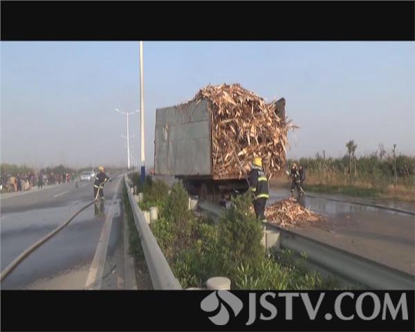 11月20日下午4点左右,盐城市滨海县327省道引江济黄河大桥(滨海往涟水方向)向西1公里处,一辆拉运木材的小型货车在行驶至该路段时突然起火,而司机在浑然不知的情况下继续行驶。接到报警后,当地消防部门随即赶赴现场进行灭火。