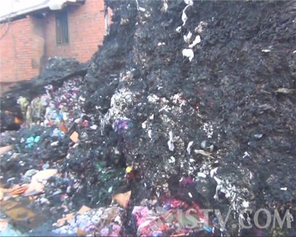 很快,明火被消防队员控制。废布下脚料在燃烧后积压在一起,外层的火苗被浇灭,但是内部仍有火星存在,极易复燃。为了防止意外的发生,消防队员用铁耙耙开,再往里面注水,全面降温。经过约2小时的努力,处置完毕。