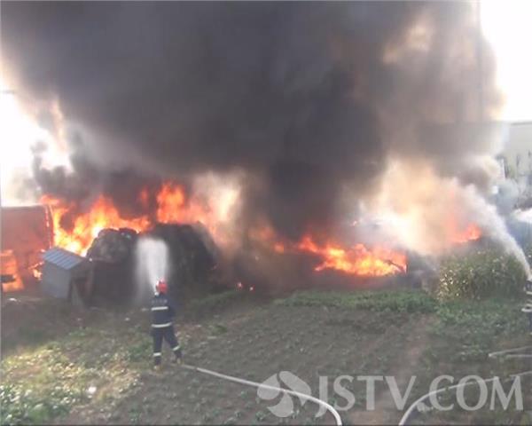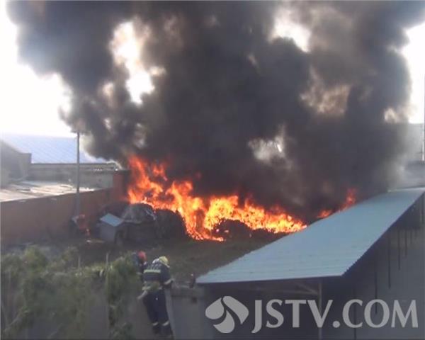 今天下午2点多,扬州高邮市巢湖路附近一家浴室发生火情,锅炉房外堆积成山的废布料堆燃起大火,浓烟滚滚,直逼相邻锅炉和电房安全。当地消防部门接警,迅速赶往现场处置。