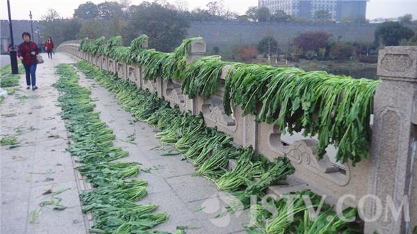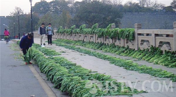 今天是农历24节气中的“小雪”。老南京有“小雪腌菜,大雪腌肉”的民间习俗,一到小雪节气,家庭主妇就开始忙着腌菜了。通常在腌菜前,市民们买回来新鲜的青菜要先在自家的院子,或找个僻静干净的地方晾晒后再清洗加工。