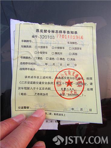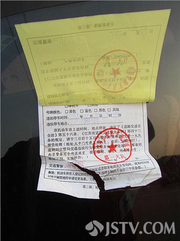 11月23日,在南京七桥翁湿地公园友谊河路路边,一辆白色轿车特别引人眼球,驾驶室车窗玻璃上,一天竟然被交警贴了“一白一黄”两张违停罚单。