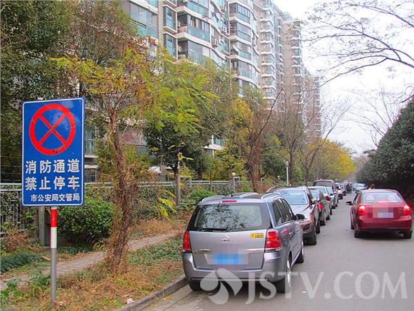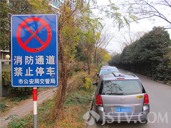位于南京东苑路银城东苑南侧有一条无名路,且消防通道的出入口处,“消防通道禁止停车”的牌子立在路边,可牌子旁俨然成了免费停车场,禁停告示牌成了摆设,消防通道实际上形同虚设。而奇怪的是交警只管竖牌,却不见贴罚单。