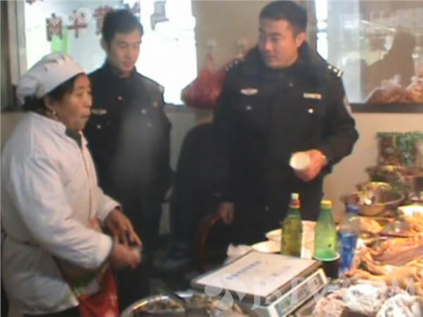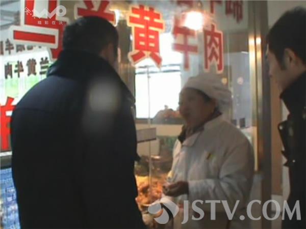这处居民房,就是卤肉零售店的生产作坊。民警在店主家里发现了大量的猪头肉和牛肉成品。并在另一个房间内当场搜查出三罐粉装的物品,而这里就是卤肉制品加工的地方。执法人员怀疑,这家的卤肉制品添加了明令禁止的亚硝酸盐。随后,执法人员经现场检验,执法人员将泡肉的水倒进检测工具里,立刻变成了红色,说明里面含有亚硝酸盐。随后,执法人员来到店主位于三官庙农贸市场的熟食店进行检查。此时,店主的老伴正在店里卖熟食。